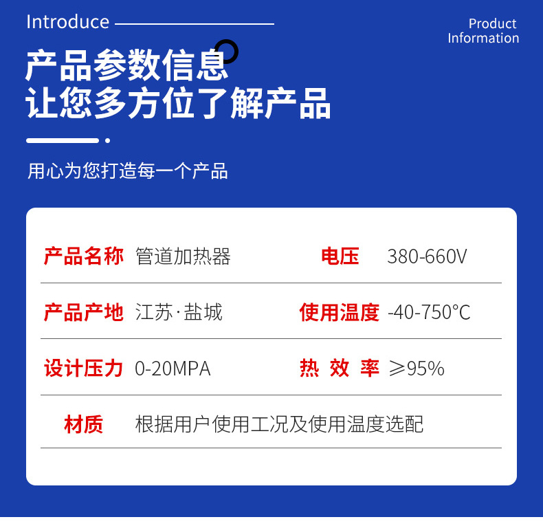 5、管道加热器在不违反使用规程时,经久耐用,使用寿命长达十年。